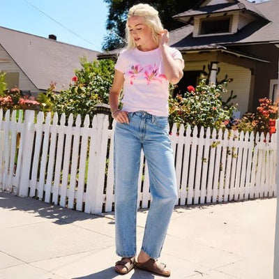 VAQUEROS INFORMALES DE TALLE MEDIO CON CONTROL DE ABDOMEN Y PIERNA ANCHA CON BOLSILLOS PARA MUJER